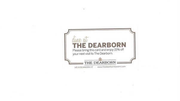 Please show this page and enjoy 15% off your next visit to The Dearborn!
