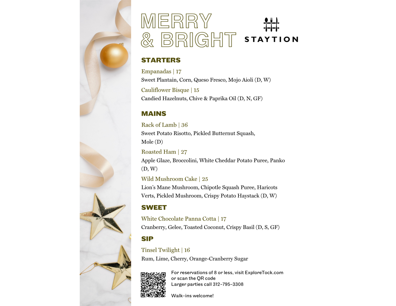 This Christmas Eve and Christmas Day, stop by Staytion Market located in the Renaissance Chicago Downtown Hotel for some tasty Christmas specials.