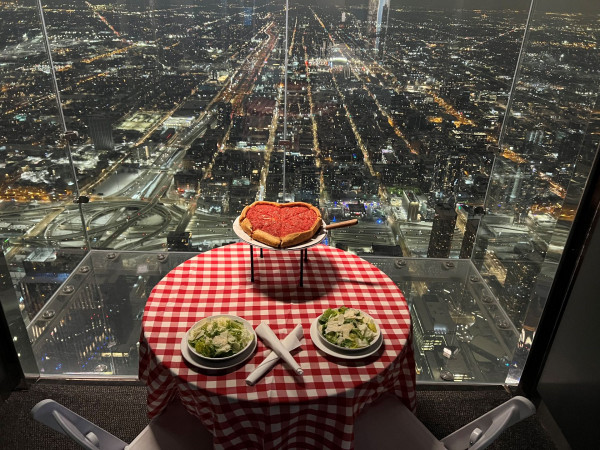 Love is in the air, and Skydeck Chicago will be offering an intimate dinner package couples don’t want to miss this Valentine's Day. Skydeck is adding a romantic twist to their Pie in the Sky dinner series; starting February 1st, guests have the option to indulge in a special heart shaped Giordano’s pizza over breathtaking views of Chicago.