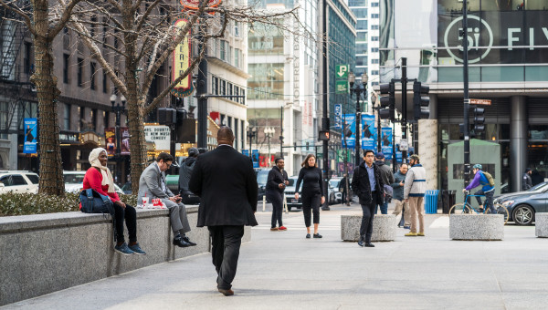 Sources for pedestrian activity provided by Springboard MRI; public transportation provided by Chicago Department of Transportation, Chicago Transit Authority and Walk Score; arts and culture provided by Choose Chicago Cultural Index, Department of Cultural Affairs and Special Events and the Art Institute of Chicago; office occupancy provided by Kastle Systems.