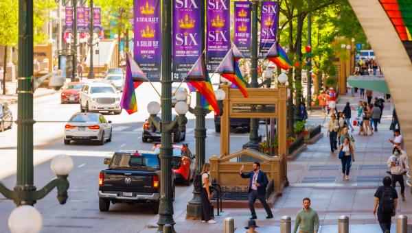 When combined, the components of the program comprise a “street takeover”—bathing State Street in color, graphic identity and art. The State Street Destination Marketing Program provides an opportunity to call attention to a cultural offering, special event, or other Loop amenity in a distinctive and visible way.