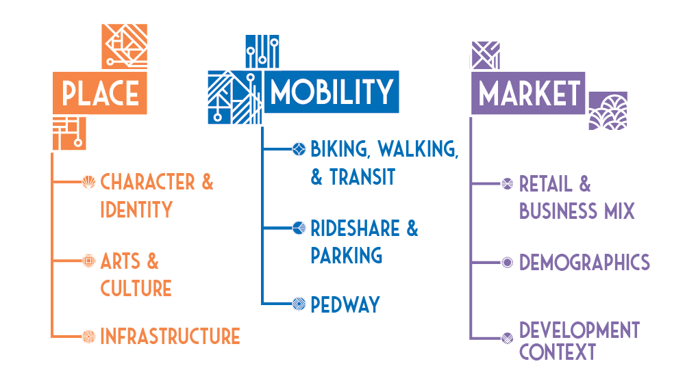 The Plan will respond to the evolving community by forging a roadmap for the future that focuses on key public realm elements such as:
