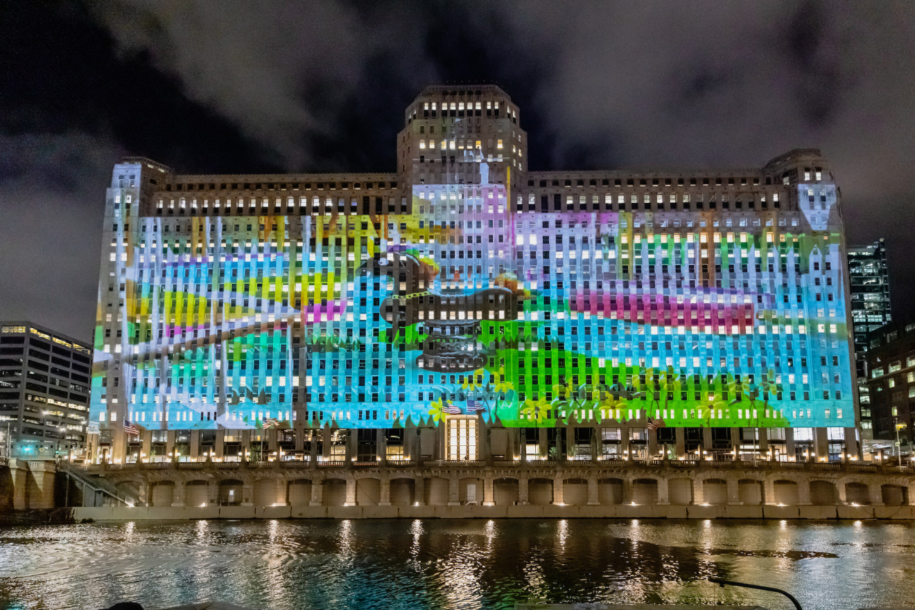 ART on THE MART is free and can best be experienced from the jetty section of the Chicago Riverwalk on Wacker Drive between Wells Street and Franklin Street, where accompanying audio can also be heard. Spring programming will be on view nightly at 8:30 p.m. from April 14 to June 7. Summer programming will premiere the evening of June 8 with a new start time of 9:00 p.m. on view through September 13. Fall and winter programming will begin at 7:30 p.m. from September 14 to December 30.