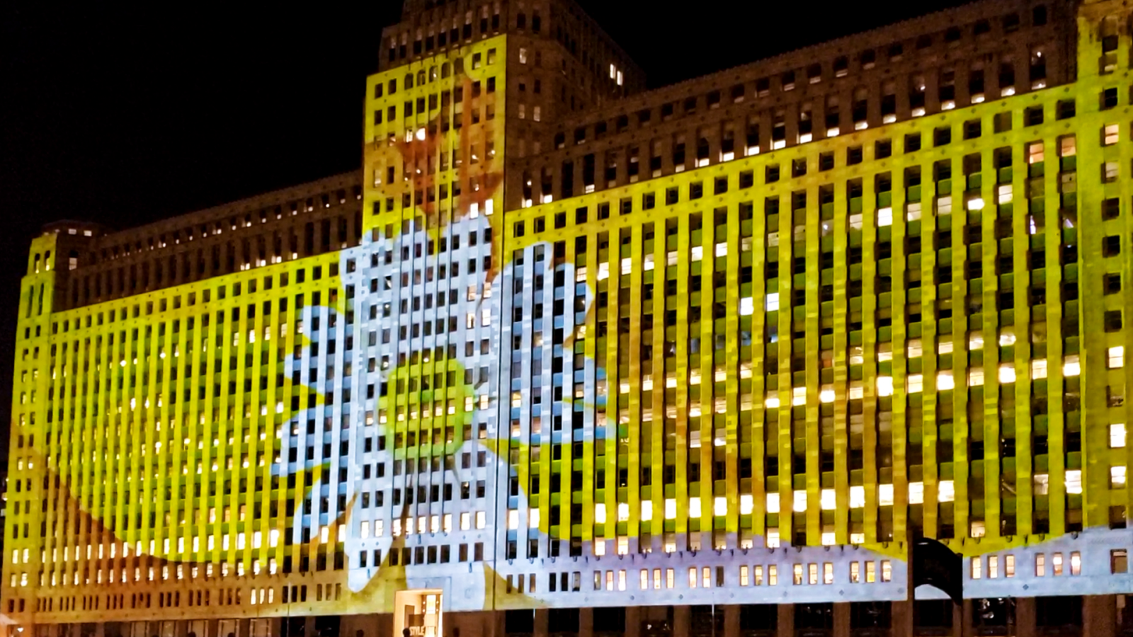 Art on theMART, the largest permanent digital art projection in the world, is now projecting four iconic artworks from the Art Institute of Chicago’s permanent collection across the 2.5-acre river-façade of theMART (formerly Merchandise Mart).