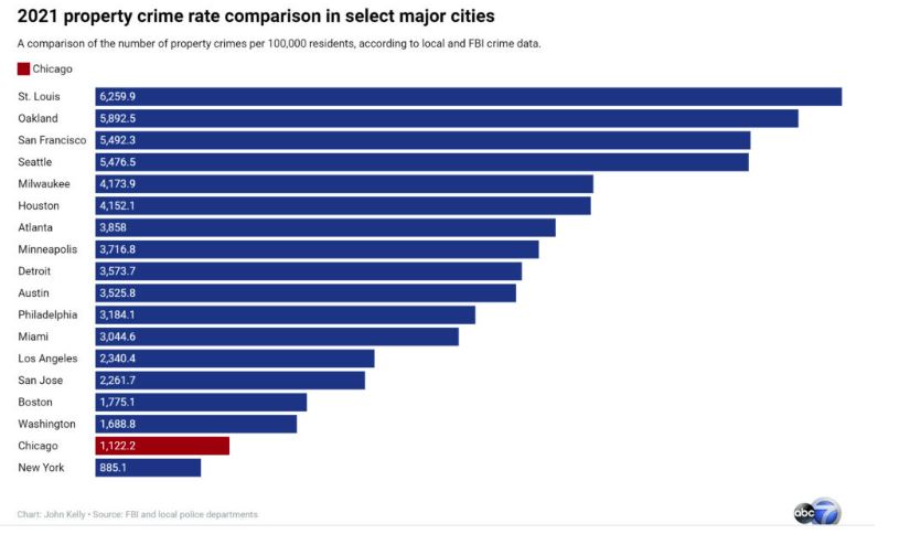 But overall, crime rates in Chicago are dropping, not rising, and per capita we are decidedly average crime-wise for a large city. Even ABC news admits to that on its crime tracking page that, when comparing to other major U.S. cities ranks Chicago: