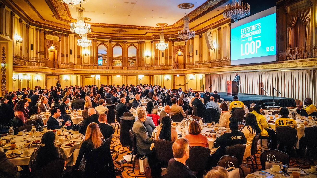 4 MIN READ – Chicago Loop Alliance and the Chicago Loop Alliance Foundation hosted their Annual Meeting at 8:30 a.m. on Thursday, March 24. Nearly 300 key Loop stakeholders gathered during the in-person event held at Palmer House, a Hilton hotel. New board members were inducted, the organization’s 2021 Annual Report was unveiled in both print and digital format, and major plans were announced for 2022.