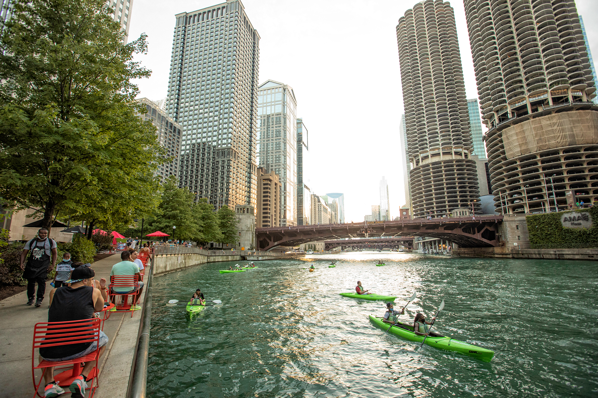 If your idea of fun involves being outside and breaking a sweat, you’ll have a blast in the Loop. Take a walk, run, or bike ride along the Lakefront Trail with Chicago’s breathtaking skyline as your backdrop, or hit up the Chicago Riverwalk for a more urban vibe. Divvy around the Loop’s protected bike lanes (Dearborn for north-south travel, Randolph for west, and Washington for east). And swing by Maggie Daley Park to rollerblade or scooter around the skating ribbon, climb on the climbing wall, play a round of miniature golf, or hit up the tennis courts.