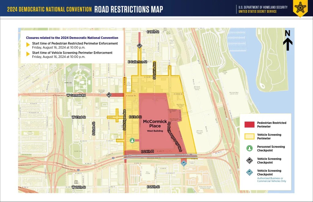 The main DNC action will be taking place outside of the Loop, therefore the Loop will not be seeing much impact in street closures or restrictions. The DNC's main events will be centered around two venues: McCormick Place, at 2301 S. Dr. Martin Luther King Jr. Drive, and the United Center, at 1901 W. Madison St. The surrounding areas to these venues will limit access to pedestrians and drivers. For impacted areas, reference the road restrictions maps below and visit the Loop Advisories webpage here for a detailed list of street closures.