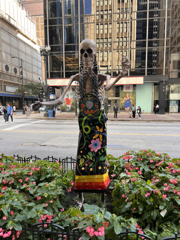 Skeletons on State activates various State Street planters with 8-ft. skeletons adorned with tributes to local Loop and Chicago institutions. Participating organizations include:
