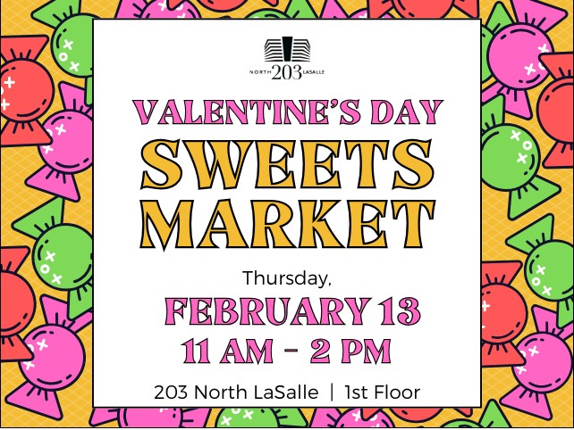 Satisfy your sweet tooth cravings and stock up on your favorite sweet treats from local vendors on February 13 from 11 a.m. to 2 p.m. at 203 North LaSalle.