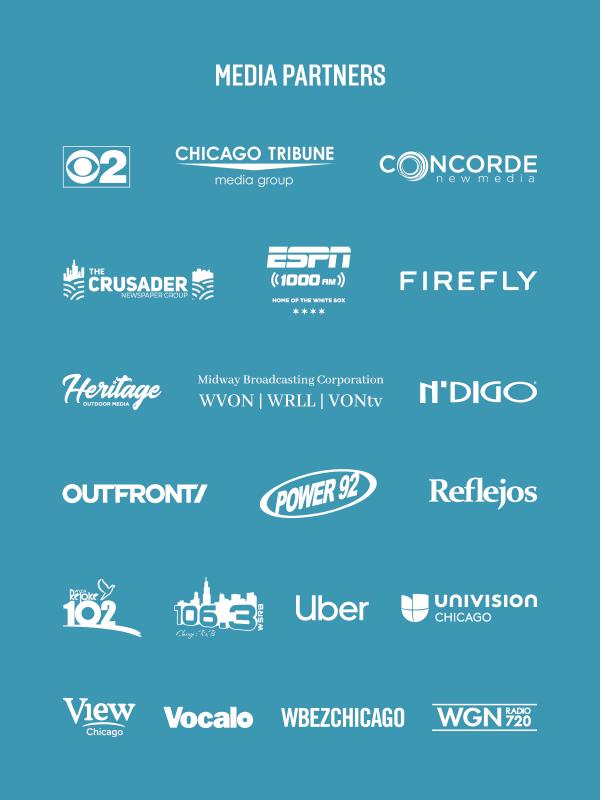 Media partners for Sundays on State include CBS Chicago, Chicago Tribune, Concorde New Media, The Crusader Newspaper Group, ESPN 1000, Firefly, Heritage Outdoor Media, Midway Broadcasting Corporation, NDIGO, OUTFRONT, Power 92.3, Reflejos Publications, Rejoice 102.3, Soul 106.3, Uber OOH, Univision Chicago Local Media, View Chicago, LLC, Vocalo, WBEZ, and WGN Radio.