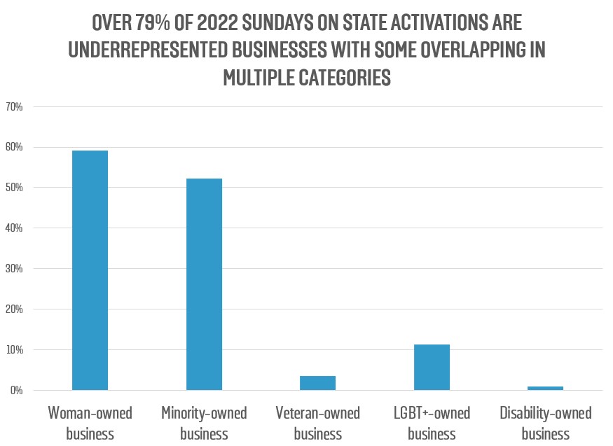 The chosen street activations were submitted by members of the Chicago community and beyond, and feature over 79% underrepresented business owners, including 59% women-owned businesses, 52% minority-owned businesses, 11% LGBTQ+-owned businesses, 4% veteran-owned businesses, and 1% disability-owned businesses with overlaps in several categories.