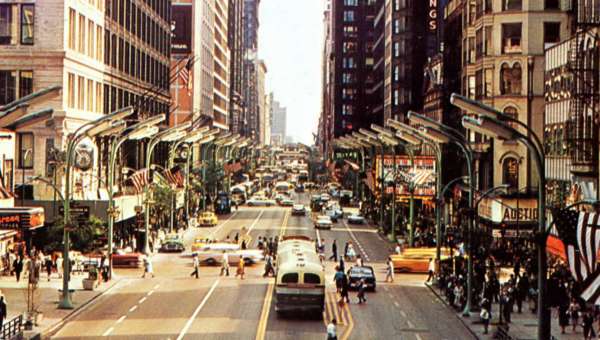 Congress Parkway — between State Street and LaSalle Street — was opened in 1952, and the full length was opened in 1956. The new, wide and bustling street came to mark the southern boundary of the Loop. In the 2000s, different beautification initiatives including sidewalk trellises and an electronic streetscaping project, Lightscape, enliven the street with lighted median columns.