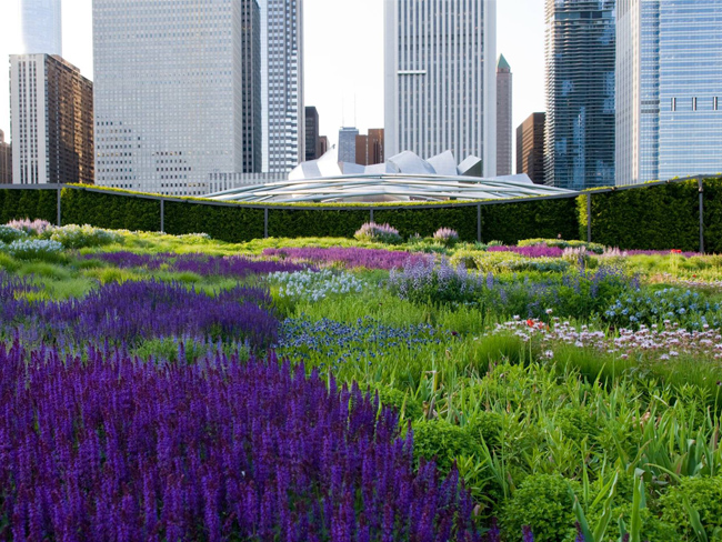 The Lurie Garden is a peaceful spot in Maggie Daley Park for an afternoon picnic. This urban oasis contains more than 350 plant species, most of them native to the area. Explore the wooden boardwalk path, floating over pools of water. Take out your picnic, relax, and take in the spectacular skyline views in the midst of a beautiful garden.