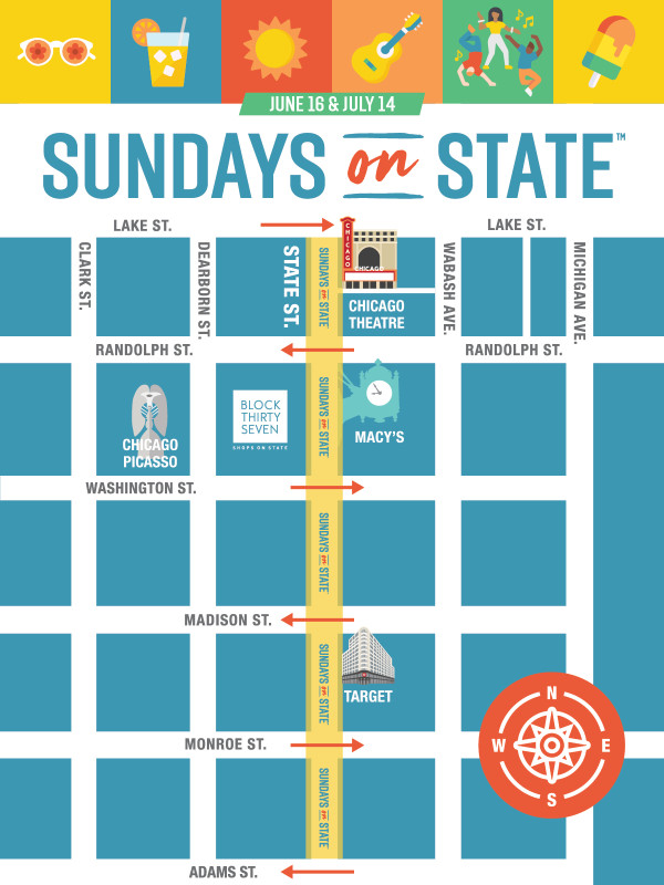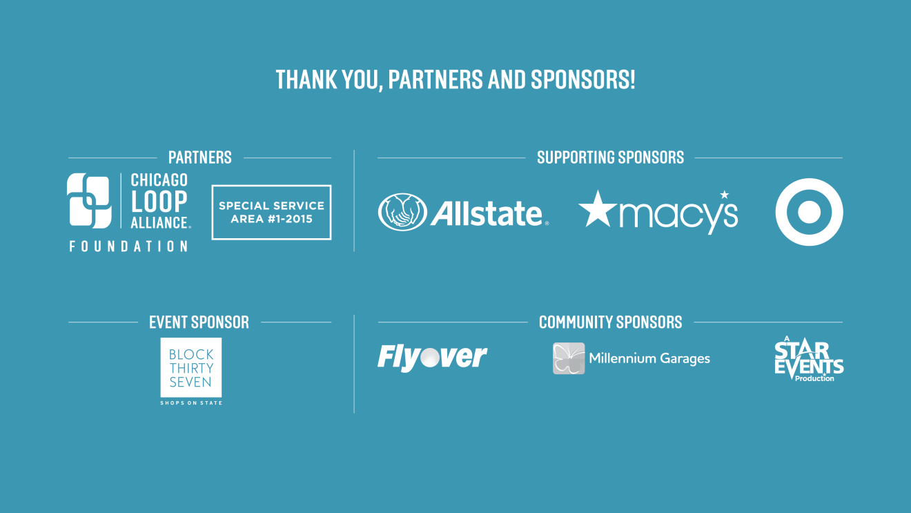 Sundays on State is a project of Chicago Loop Alliance in partnership with Chicago Loop Alliance Foundation and Special Service Area #1-2015. Supporting sponsors are Allstate Insurance Company, Macy’s and Target. The event sponsor is Block 37. Community sponsors are Concorde New Media, Flyover, Millennium Garages, and StarEvents. Sponsorship options are also available for other businesses interested in getting involved. More details can be found here.